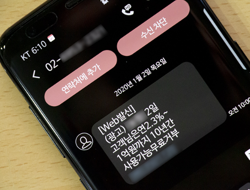 스팸은 전화뿐 아니라 문자(SMS/MMS)로도 옵니다.