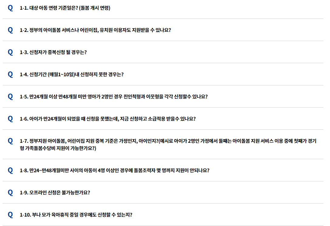 - 정부 아이돌봄 서비스 미이용자만 지원 가능.