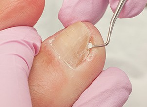 발을 온화한 염화나트륨 용액에 담그어 발톱을 유연하게 한 뒤, 발톱 끝부분 아래에 멸균된 면을 넣어 발톱과 살이 닿는 부분을 분리합니다. 이 면은 매일 최소 한 번씩 교체해야 합니다. 처음엔 통증이 있고 잘 벌어지지 않을 수 있지만, 지속적으로 시행하면 통증이 감소하고 수술이 필요 없을 수도 있습니다. 최근에는 발톱 양쪽에 플라스틱 튜브를 넣는 방법이나 발톱 상단을 갈아내어 유연성을 높이는 방법 등이 개발되었지만, 아직 명확한 효과를 입증한 새로운 방법은 없습니다.