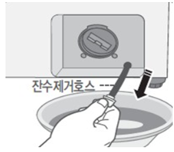 - 잔수 제거 시 주의: 호스를 단단히 잡고 작업하지 않으면 내부로 들어갈 수 있습니다.