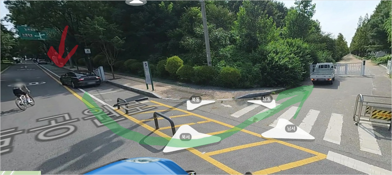 아래 붉은색 표시된 곳에 주차후 녹색길을 따라 들어가면 됩니다.