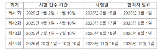 - 일정 경력 조건 충족 시 시험 응시 가능