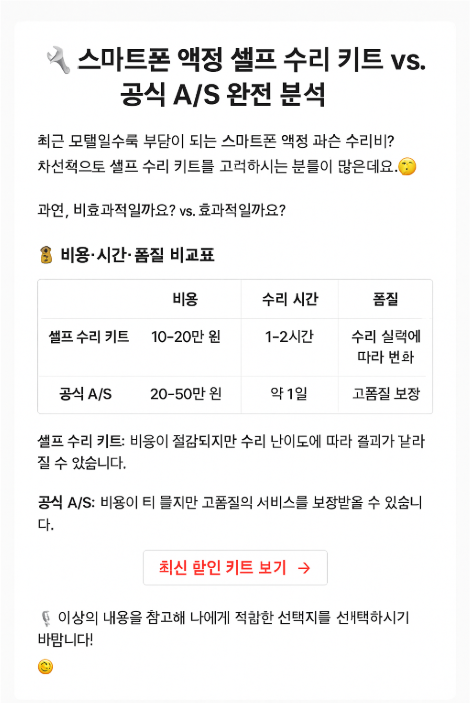 🛠️ 스마트폰 액정 셀프 수리 키트 vs. 공식 A/S 완전 분석