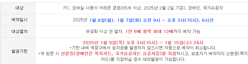 2. 예매일자 : `25.1.6.(월) ~ 1.9.(목)