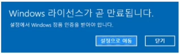 간혹 윈도우를 정상적으로 사용 중인데도 불구하고 "Windows 라이선스가 곧 만료됩니다"라는 메시지가 나타나는 경우가 있습니다. 이럴 때는 제품키 변경을 통해 문제를 해결할 수 있습니다.